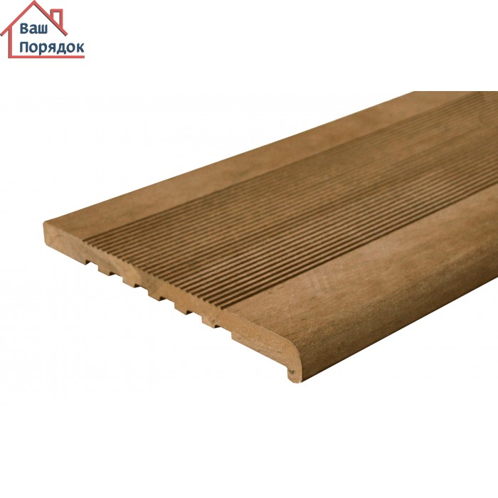 Ступени - самые высоконагруженные места террасы, тут и высокая проходимость и большие и частые ударные и динамические нагрузки, а также самый большой риск повреждения доски каблуком, поэтому наша рекомендация, исходя из большого опыта, - применять полнотелые сверхпрочные ступени из ДПК. В нашем ассортименте несколько видов, с одинаковым дизайном поверхности одноименных досок.